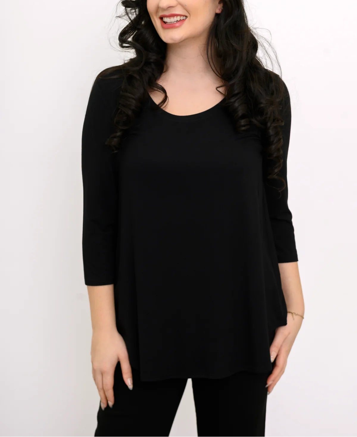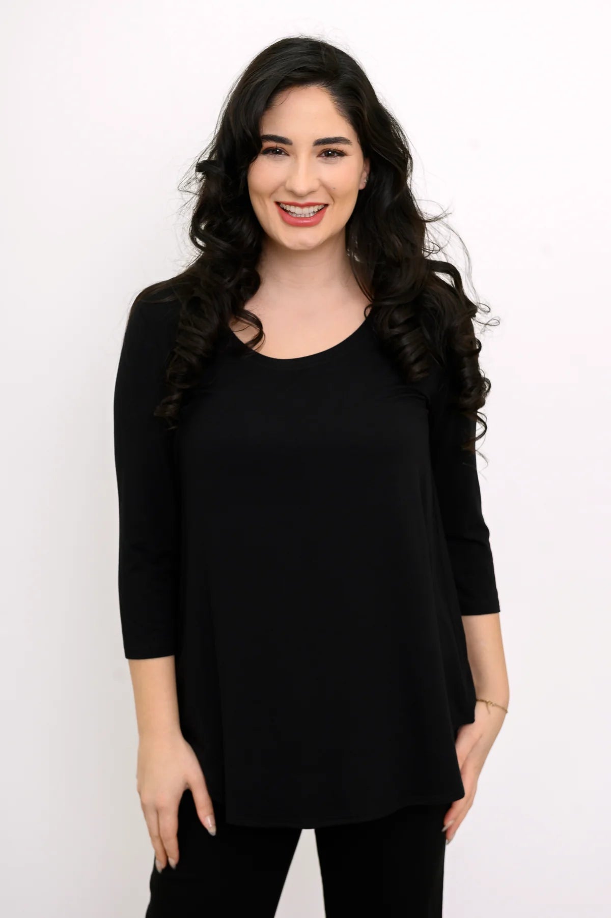 Crafted from ultra-soft bamboo fabric with stretch, the Jazz Top is naturally breathable, lightweight, and gentle on the skin. The longer hemline provides extra coverage, making it ideal for everyday wear, travel, and layering. Finished with 3/4 sleeves, a flattering scoop neckline, and a rounded hem, this top delivers timeless style with all-day comfort.