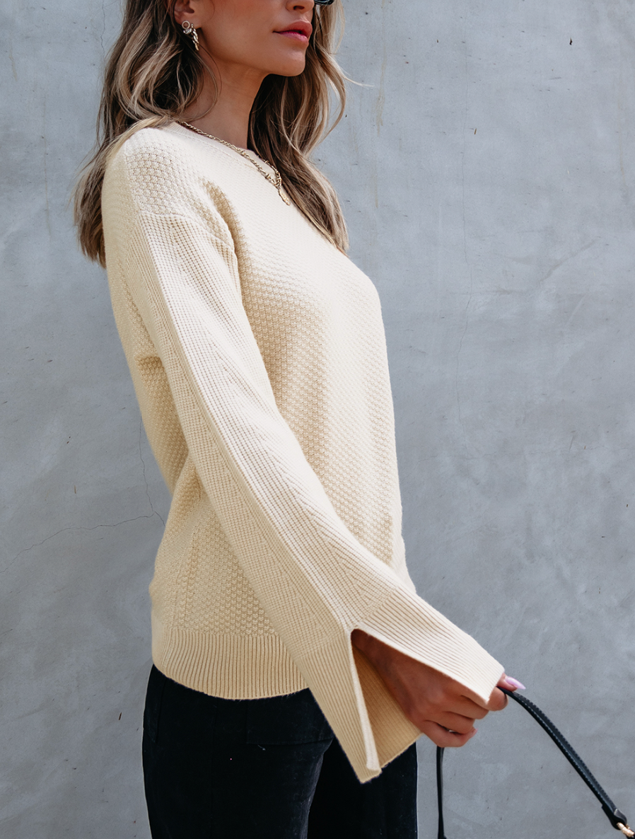 The Lesley Cream Sweater: your timeless wardrobe staple that combines comfort, style, and subtle elegance for any occasion.