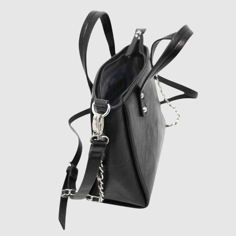 Designed with two interchangeable handle styles, the Katherine effortlessly transitions from work to weekend. The classic strap keeps things professional and office-ready, while the silver chain braided strap instantly elevates your look for evening events, dinner dates, or girls’ nights out. Elegant silver hardware adds a refined finish that pairs beautifully with the sleek black design.