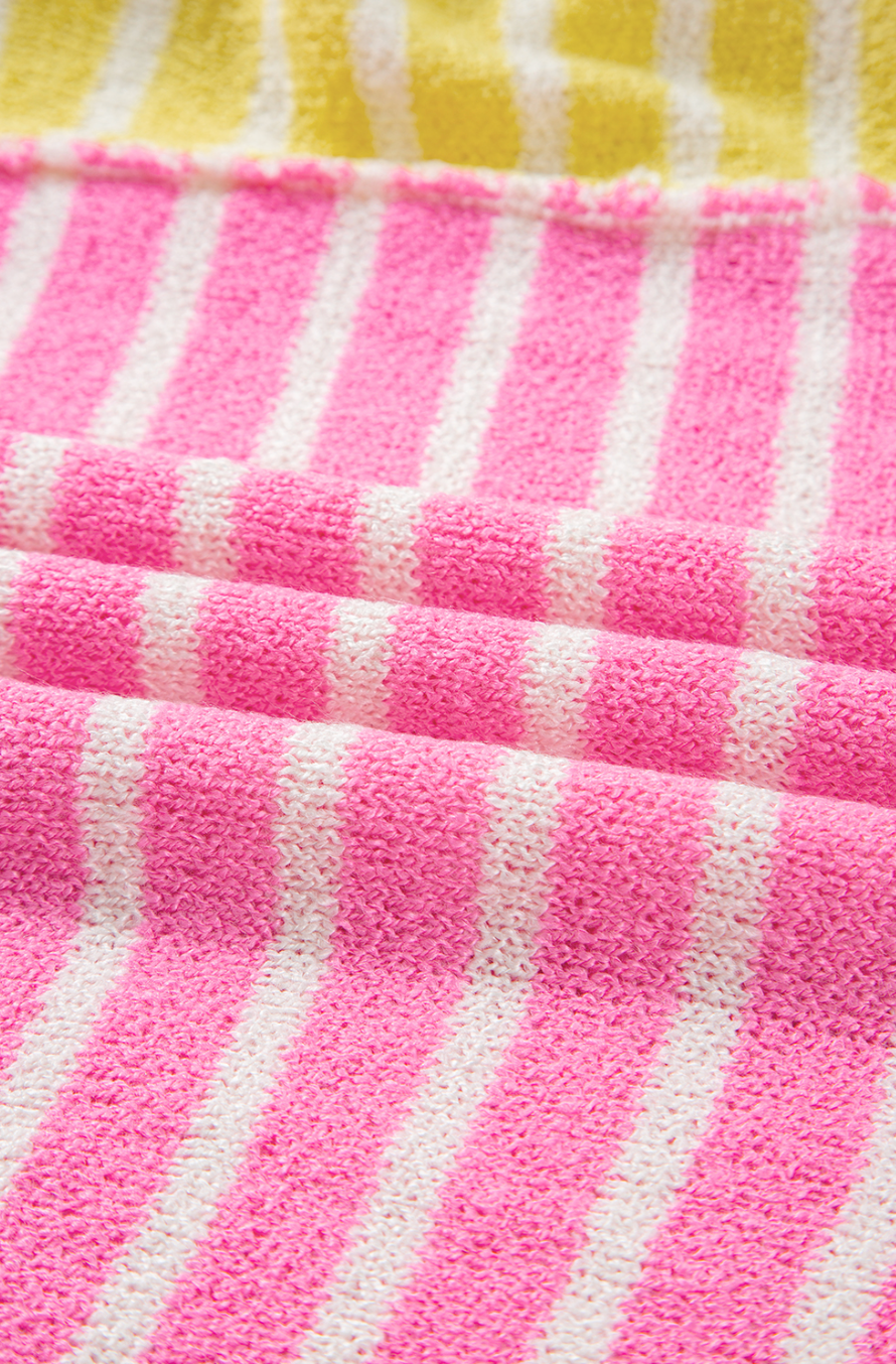 Bright, bold, and effortlessly cozy—the Candyland Sweater is the ultimate statement knit for your wardrobe. Designed with a playful multicolour colour block striped patchwork in shades of pink, blue, and yellow, this sweater brings cheerful vibes to any outfit. The exposed seam details add a modern edge, while the dolman sleeves and split hem keep the look relaxed and flattering.