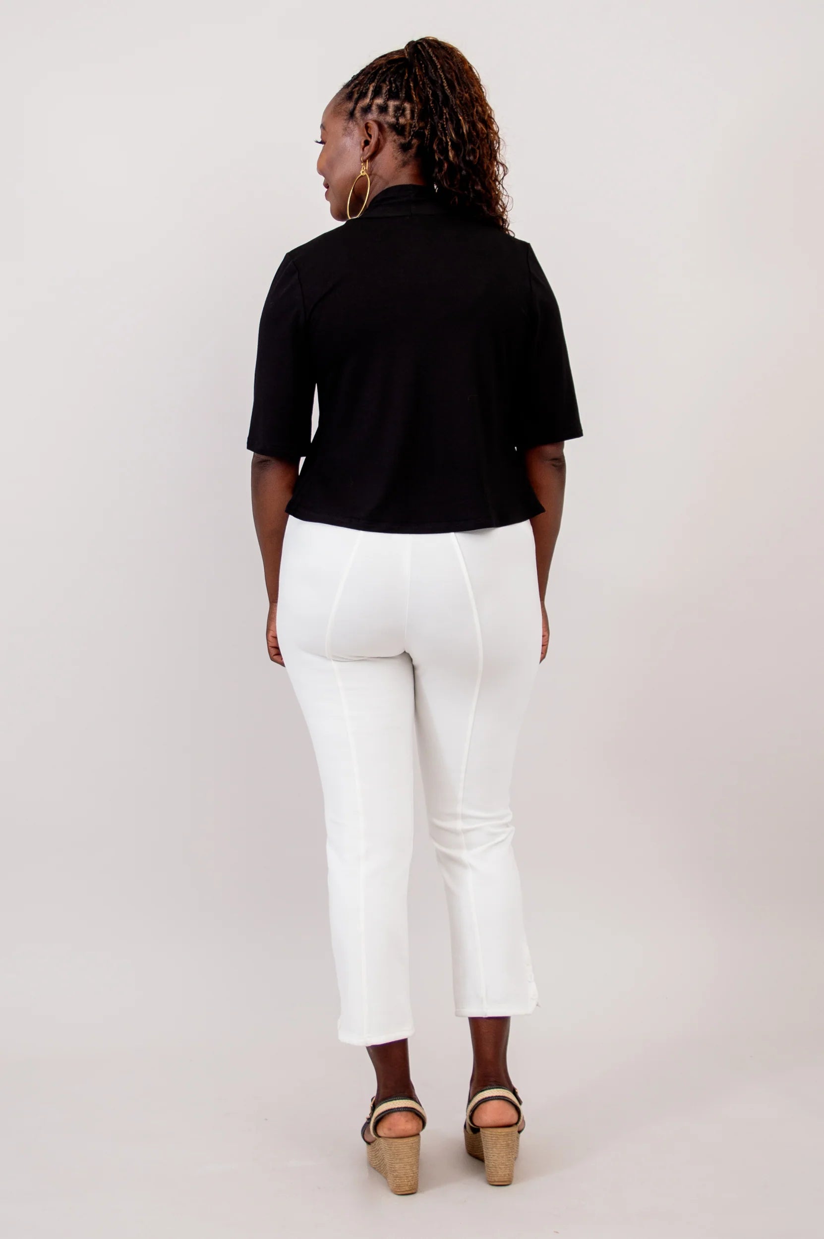 With its short sleeves just above the elbow and cropped hem, the Doda Jacket offers just the right amount of coverage without feeling bulky. The open-front design keeps the look clean and streamlined — no zippers, no buttons, just simple, modern style that works with everything in your closet.