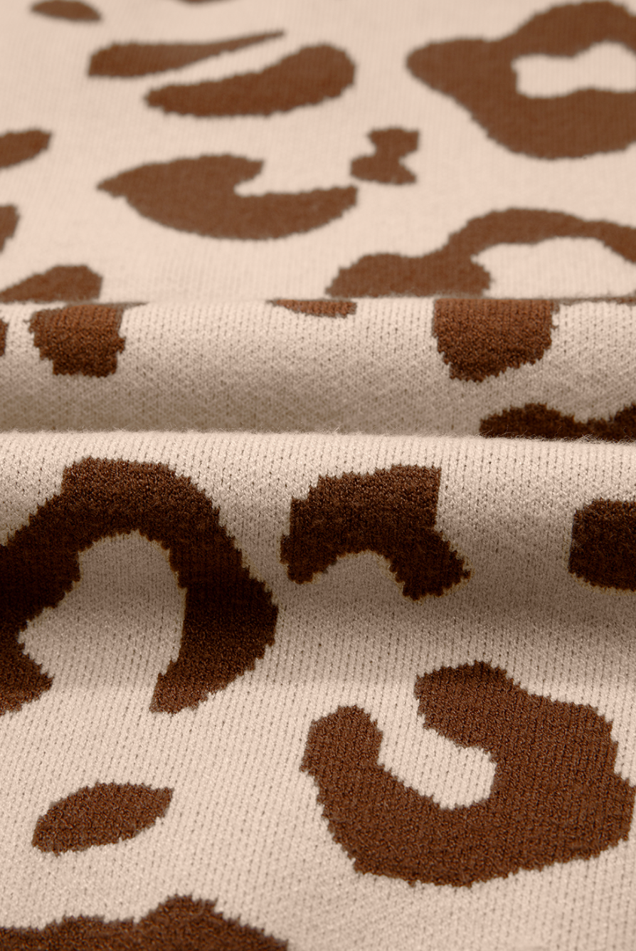 Make a confident, free-spirited statement with the French Leopard Sweater, an elevated animal print knit designed to balance bold style with everyday comfort. Featuring an all-over leopard print with rich brown trim, this sweater brings warmth, personality, and polish to your wardrobe.