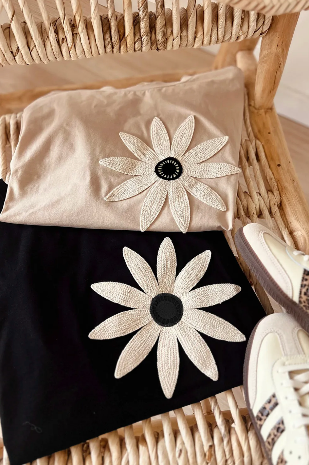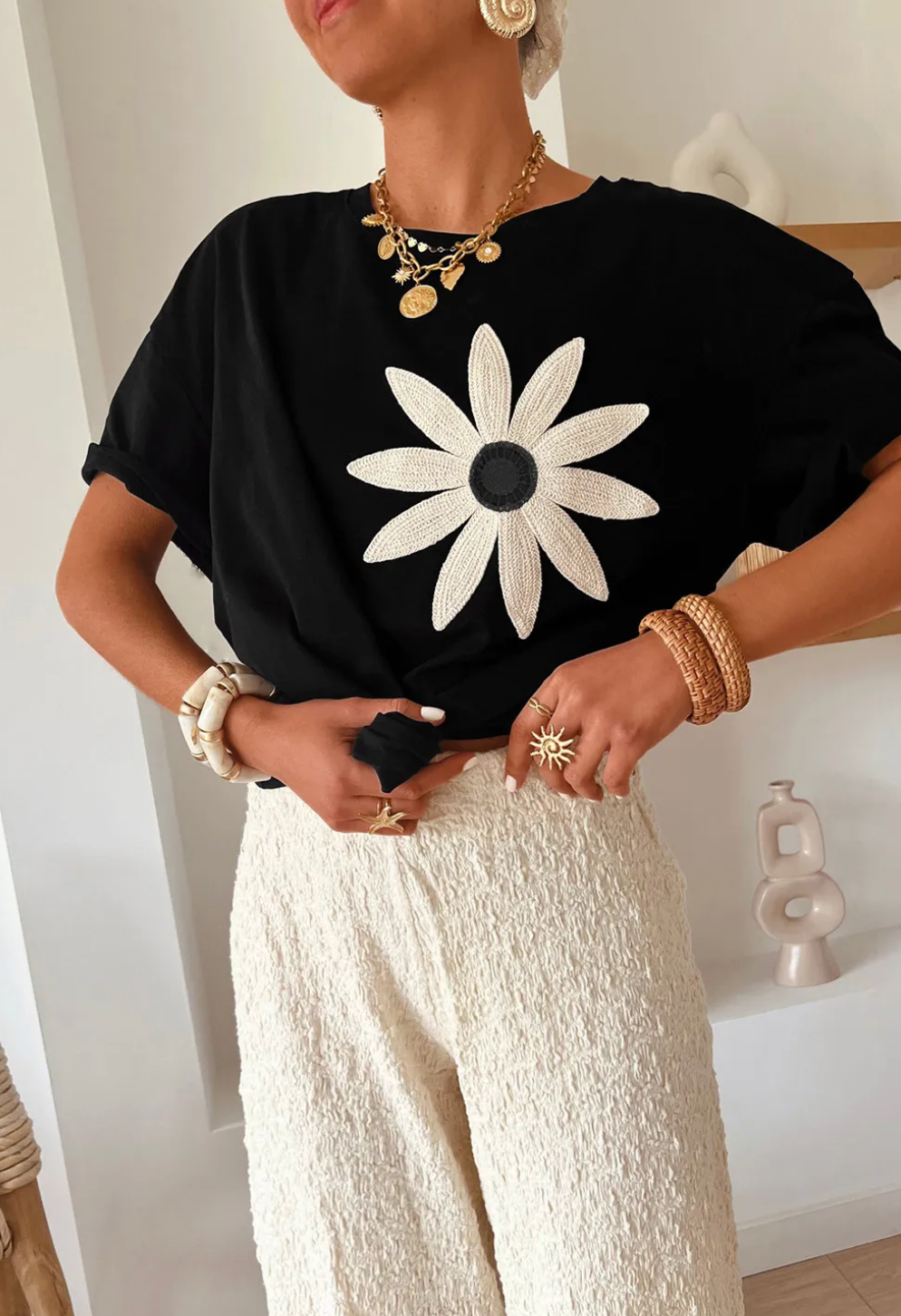 Say hello to your new favourite tee! The Crochet Flower Cotton Tee in classic Black is all about easygoing vibes with a touch of bohemian flair. Made from soft, breathable cotton, it features a relaxed loose fit and drop shoulder design that’s perfect for laid-back days and all-day comfort.