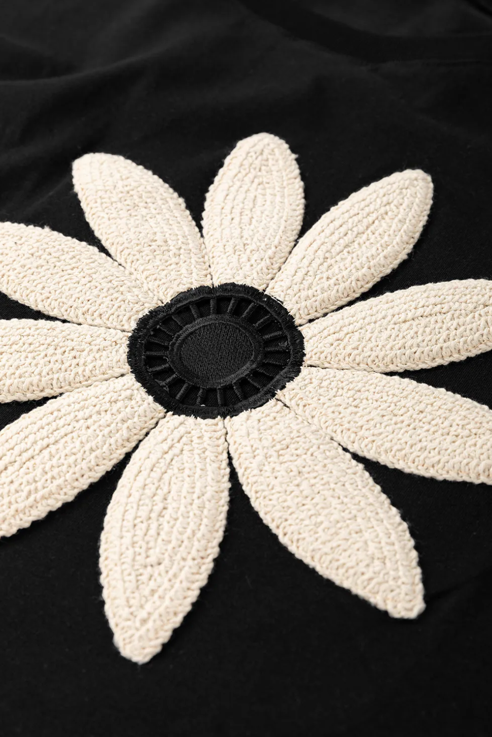 Crochet Flower Cotton Tee | Black